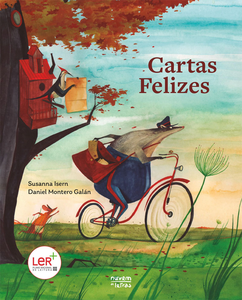 “Cartas Felizes” (Nuvem de Letras, 2024) é uma deliciosa história de um velho e solitário carteiro que, todas as manhãs, “sai de casa com a sacola cheia. Pega na bicicleta e dá início à sua jornada”, vai de porta em porta, toca à campainha e apenas diz “Esquilo, carta vai”, “Ouriço, carta vai”, “Pica-Pau, carta vai” – e assim sucessivamente. Assim são os dias do velho carteiro, pedalando pela floresta a distribuir cartas aos animais. Todos recebem cartas: cartas misteriosas, mágicas, apaziguadoras, pedidos de desculpa, convites para jantar, apresentação de soluções para os problemas. No entanto, as cartas são sempre escritas pela mesma pessoa. Quem escreveria estas magníficas cartas? Um dia, o carteiro recebe uma. Fica muito nervoso, pois é a primeira vez que o velho carteiro recebe uma carta. Quem terá escrito ao carteiro?