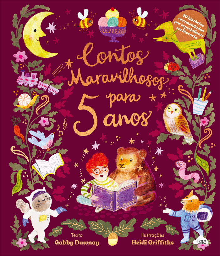 “Contos Maravilhosos para 5 Anos” (Nuvem de letras, 2025), escrito por Gabby Dawnay e ilustrado por Heidi Griffiths, é um livro para ler devagar. Aqui há lendas, poemas e muitas histórias e contos – contos antigos e contos novos.