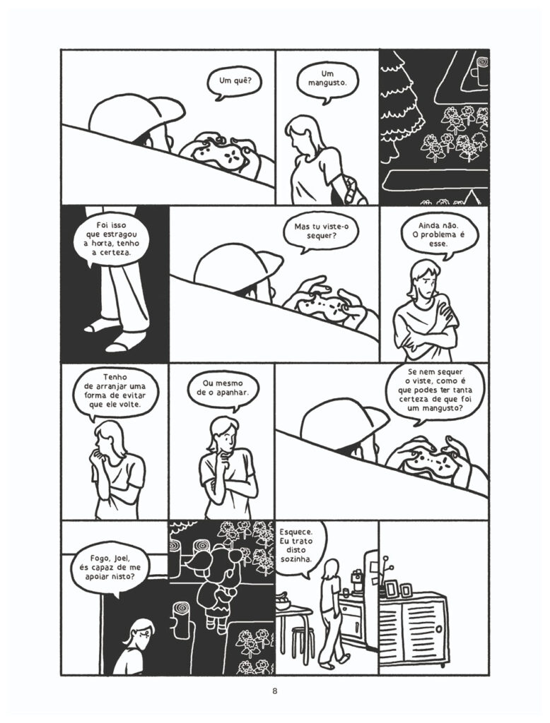 Autora de “Altamente” e de “O Outro Lado de Z” (a meias com Nuno Duarte, autor do argumento), Joana Mosi assina em “O Mangusto” (A Seita/ Comic Heart, 2024) um álbum sobre a perda, a reparação e a urgência do quase esquecimento como forma de sobrevivência.
