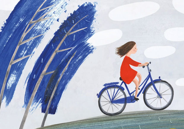 As ilustrações desempenham um papel crucial, ampliando o significado do texto. São coloridas, expressivas e plenas de movimento, aludindo a um diálogo vivo entre imagem e texto, impedido que o leitor se esqueça do grande protagonista do livro – o vento -, que ganha visibilidade de diferentes formas: as folhas voam, os cabelos ficam despenteados, as nuvens são empurradas pelo céu, as pás do moinho giram com força, os hydroptère – embarcações à vela – tornam-se ainda mais rápidos.