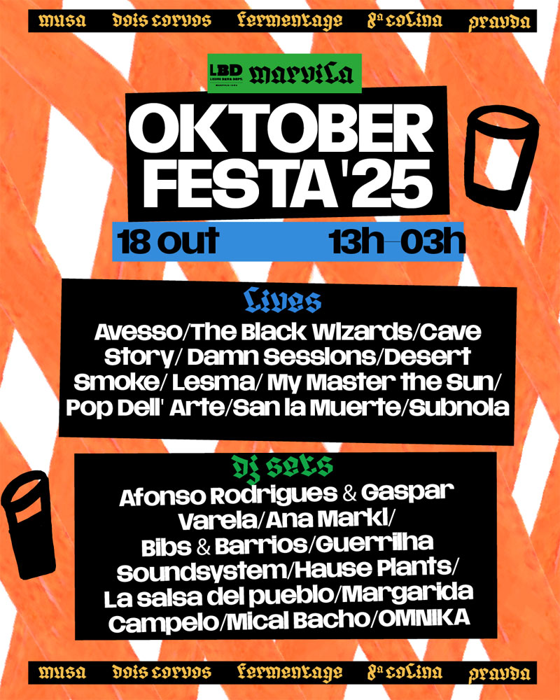 Está de volta a versão bem portuguesa de uma das maiores celebrações mundiais em torno da cerveja. No dia 18 de Outubro, a Oktober Festa 2025 ocupa os espaços das cervejeiras independentes e artesanais localizadas entre Marvila e Cabo Ruivo, com mais de 40 variedades de cerveja e um cartaz musical. O acesso é gratuito e a festa decorre entre as 13:00 e as 03:00 na Dois Corvos, Fermentage, MUSA, Oitava Colina e Pravda, que se estreia este ano na celebração.